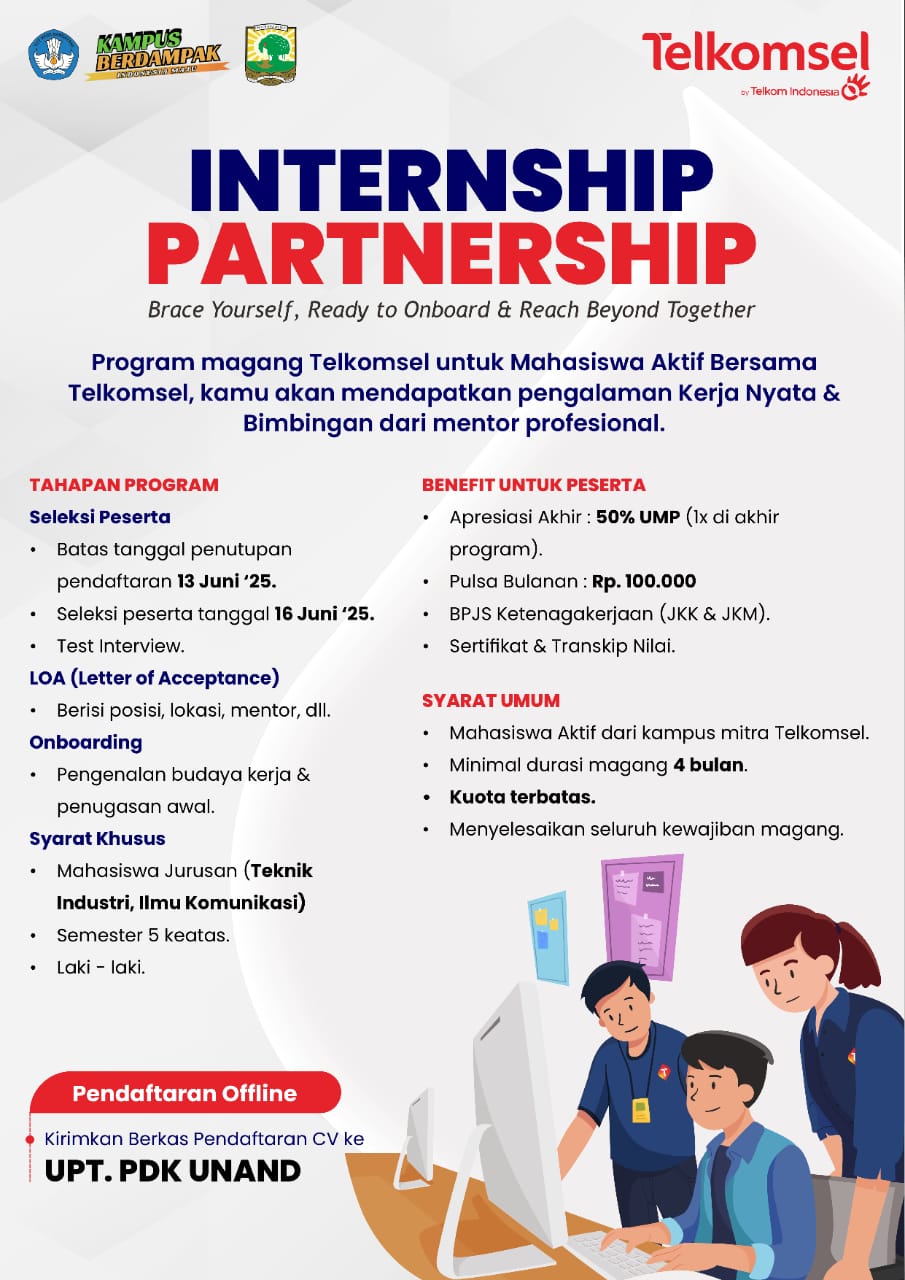 Berdasarkan perpanjangan pendaftaran mahasiswa Program Magang Berdampak di Telkomsel dan seleksi yang telah dilaksanakan, bagi mahasiswa Universitas Andalas, sebagaimana yang telah diumumkan sebelumnya, berikut disampaikan daftar mahasiswa yang lolos (tambahan) untuk mengikuti program Magang Telkomsel tersebut.